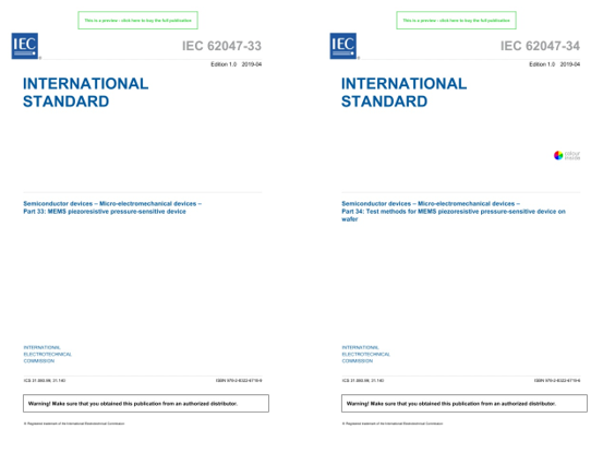 已发布的两项IEC国际标准是关于MEMS压阻式压力敏感器件的标准,其中IEC 62047-33...
