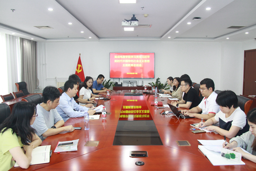 为推动学习贯彻习近平新时代中国特色社会主义思想主题教育走深走实,牢牢把握“学思想、强党性、重实践、建新功”的总要求,集成电路学院党委把理论学习、调查研究、推动发展、检视整改等贯通起来,有机融合、一体推进。以学促干,将主题教育与日常工作充分结合,激发师生爱国热情,凝聚科创奋进力量。