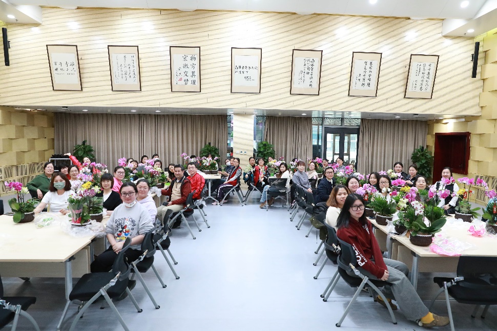 中午12:30,随着主持人工会组织委员韩临老师轻松幽默的欢迎词拉开了活动的序幕,真诚的话语让整个报告厅顿时充满了温暖和喜悦。随后,女工委员金莲玉老师用精心准备的PPT 为大家揭开了蝴蝶兰神秘而又迷人的面纱—— 从品种分类到养护技巧,再到如何巧妙地将其与其他植物搭配,每一个细节都透露出对美的追求与对生活的热爱。