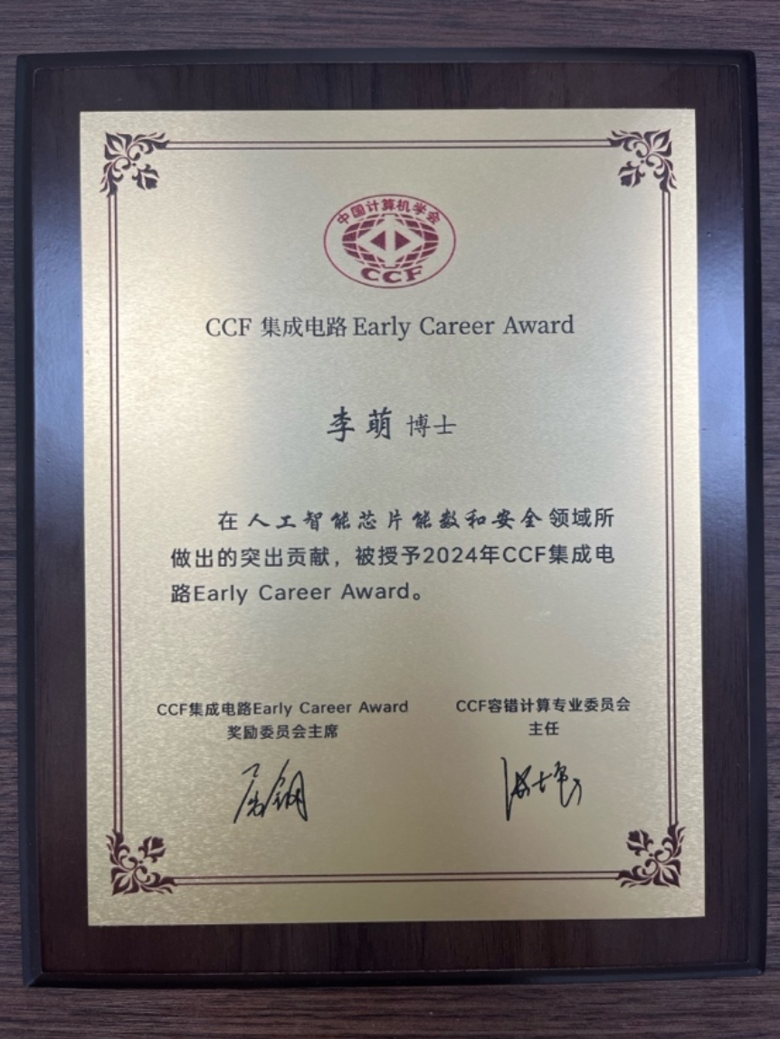 助理教授李萌,并于7月20日在第二届中国计算机学会芯片大会CCF Chip 2024学术会议上颁发。