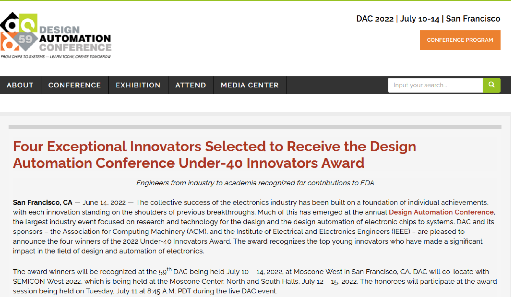 //www.dac.com/Media-Center/DAC-Press-Releases/-Four-Exceptional-Innovators-Selected-to-Receive-the-Design-Automation-Conference-Under-40-Innovators-Award