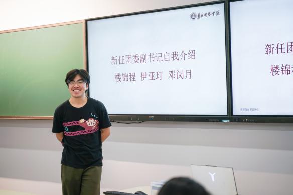 现任学生常代表杨佑铭作为往届学生代表,分享了他过去在团委学术科研部工作的经历和感悟,并对新加入团委大家庭的同学们提了几点建议,希望大家能在科研和学工之间找到属于自己的节奏,期盼同学们在未来的工作中同心合力,秉承着为同学服务的理念,把“服务同学”刻进每一次工作的细节,把“帮助同学”落到每一个真实的需求,为学院的发展注入新的活力,为校园生活增添新的色彩。