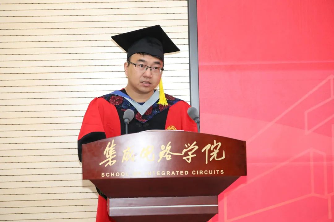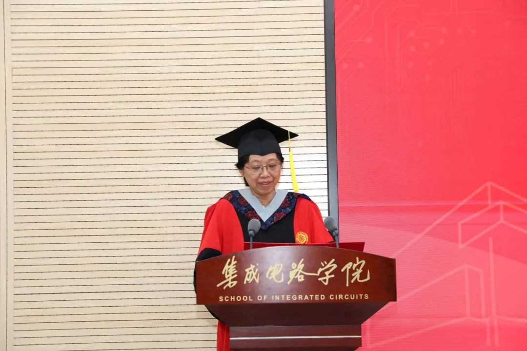 院长蔡一茂在致辞中对2025届毕业生圆满完成学业表示祝贺,并感谢师长、家长的支持。他回顾了近年来同学们在国家大力发展集成电路背景下的求学历程,并强调集成电路事业肩负国家战略使命,希望大家秉持北大优秀集成电路人不畏艰难、勇于创新的传统,推动我国集成电路事业发展。在致辞中,他鼓励毕业生志存高远、涵养品格,把个人理想融入民族复兴伟业,并祝愿同学们在今后的日子里内心永远保持着载流子般的活力,像3D IC一样层层堆叠出精彩梦想,像EUV光刻般精准聚焦未来,像最灵敏的传感器般敏锐地体验丰富多彩的人生。