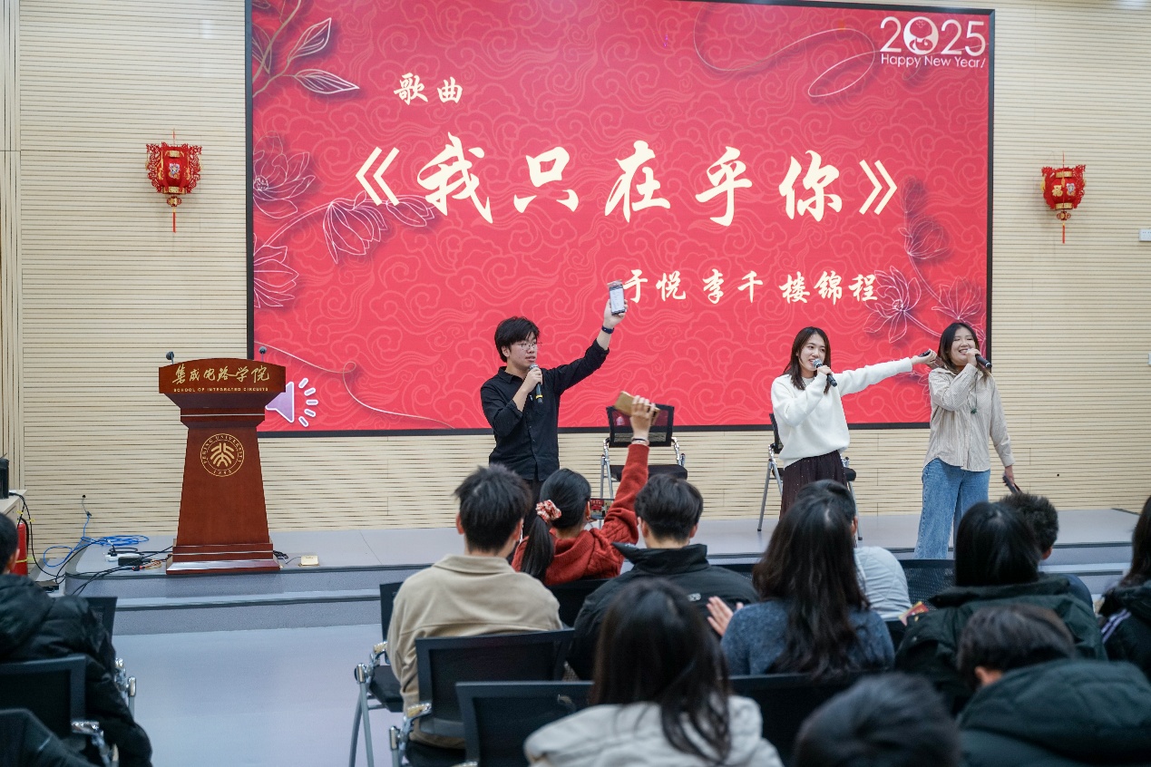 2025“芯元华章”新年喜乐会在微纳103报告厅举办。本次活动由学院团学策划主办,学院100余位师生共迎美好新年,现场洋溢着喜庆和欢乐的氛围。