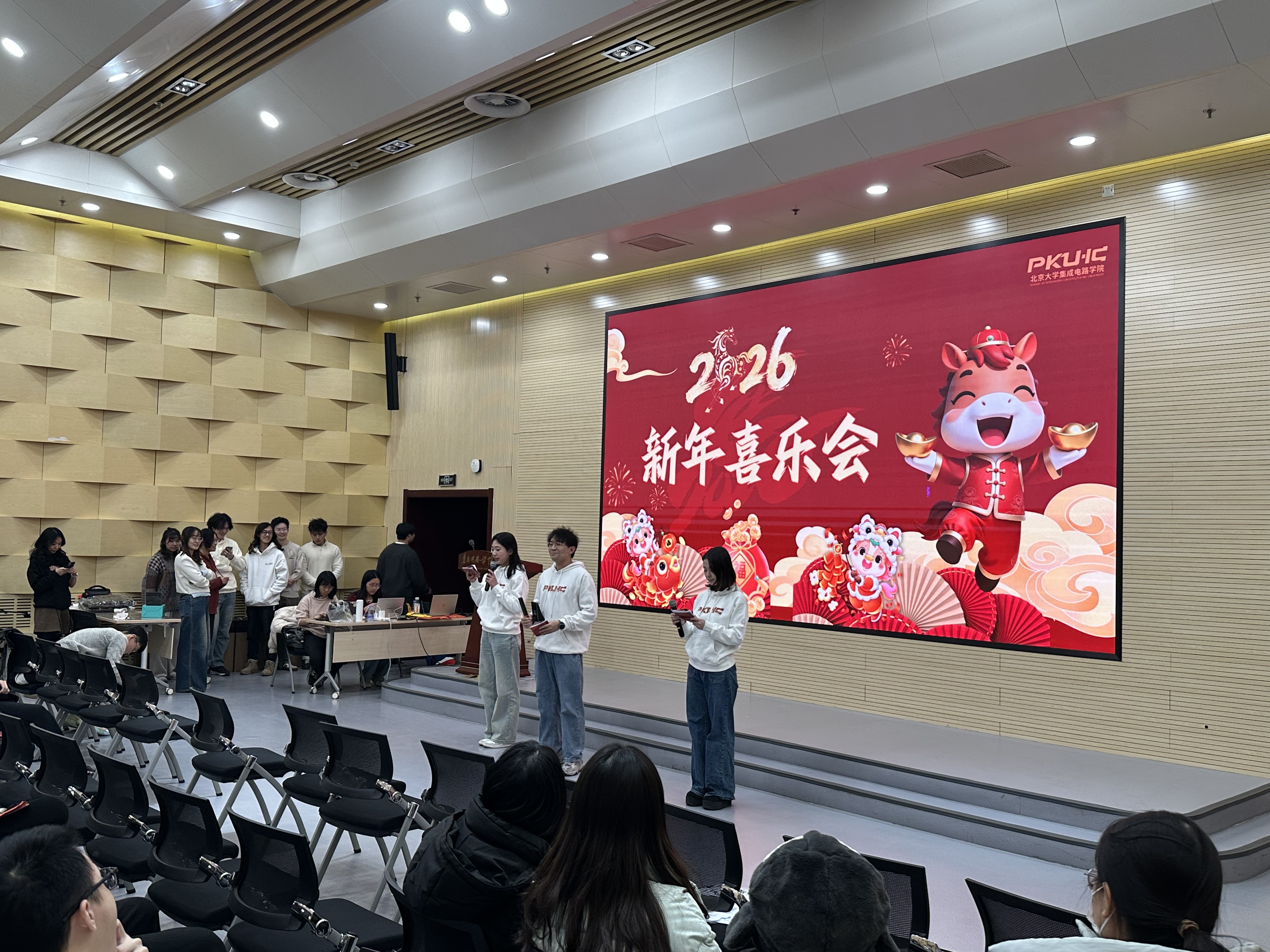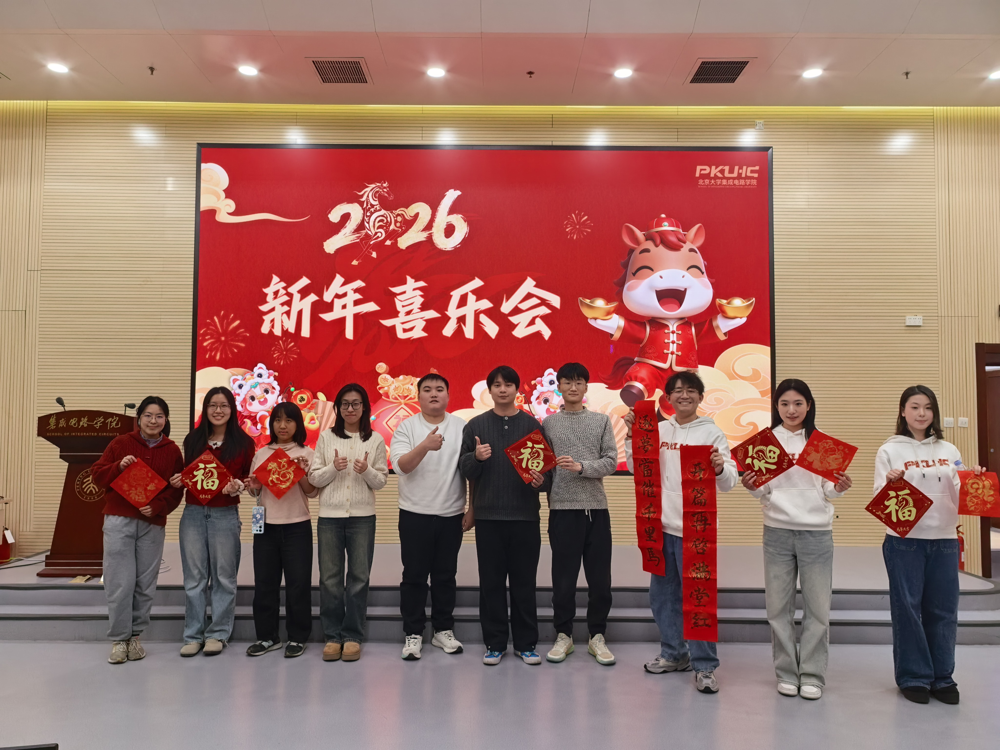 2026年“芯元华章”新年喜乐会在微纳103报告厅举办。本次活动由学院团学策划主办,学院100余位师生共迎美好新年,现场洋溢着喜庆和欢乐的氛围