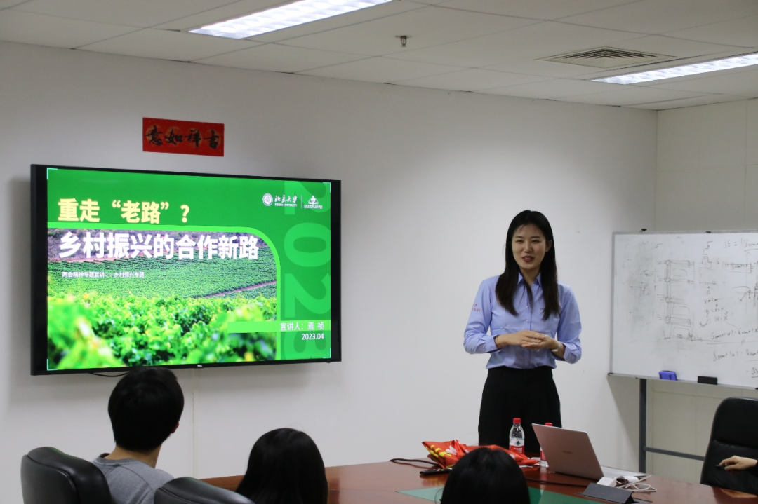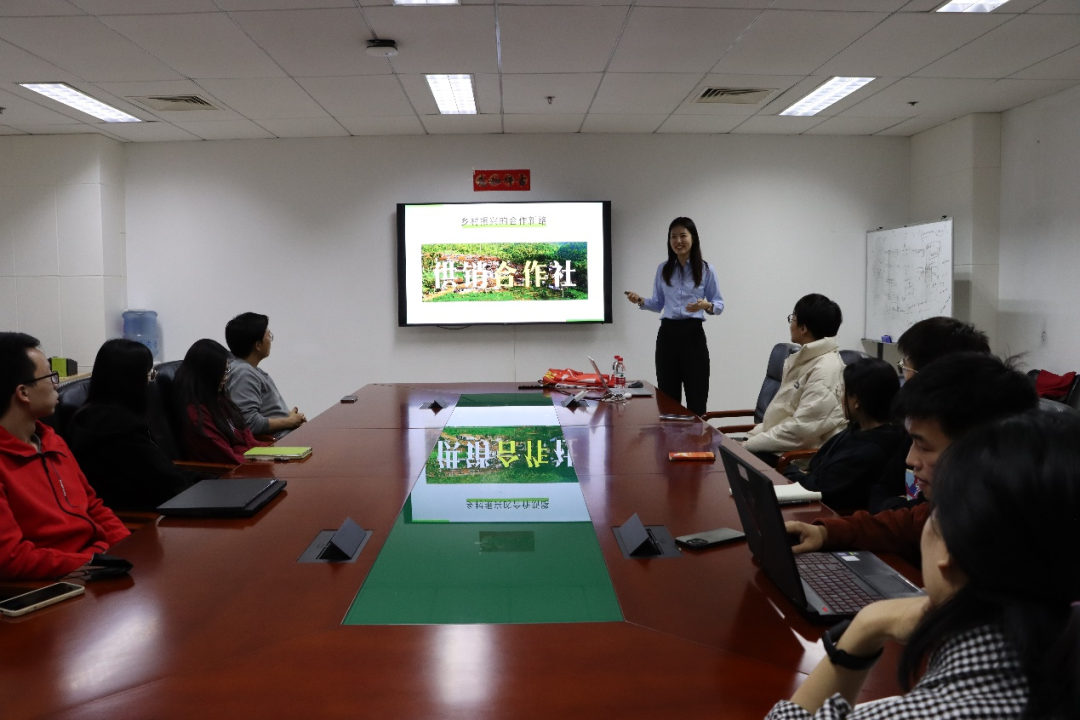 接着由焉祯同学带来《学习贯彻全国两会精神——又走“老路”?乡村振兴的合作新路》为主题的报告,焉祯同学结合今年“两会”背景,就报告中的“供销合作社”相关表述进行了宣讲。焉祯同学从供销合作社的历史发展讲起,同时紧密结合党的十八大以来的供销合作社相关重要论述,对供销合作社的作用以及与乡村振兴的关系进行了详细解读。最后,焉祯同学指出,今天的供销合作社合作新路需牢牢坚持“为农服务”根本宗旨,绘就出通往乡村振兴的道路。