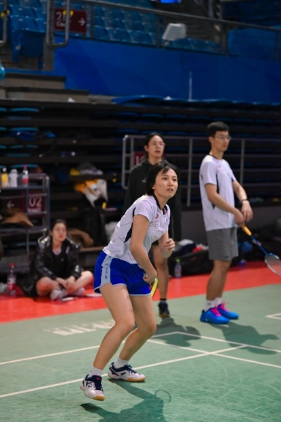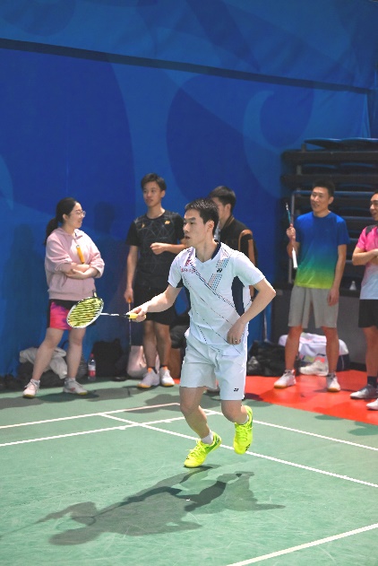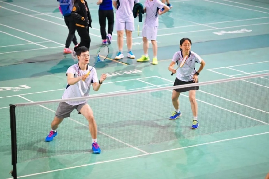 总比分1比2落后。第四场再次面对校队选手带领的女双,高思洋和李婷教职工组合顶住压力以23 :21险胜对手,总比分2比2,将比赛拖入决胜局。最后一场高思洋老师兼项,与高旭混双组合轻松拿下,最终以总比分3比2战胜数学对外汉语联队挺进八强。