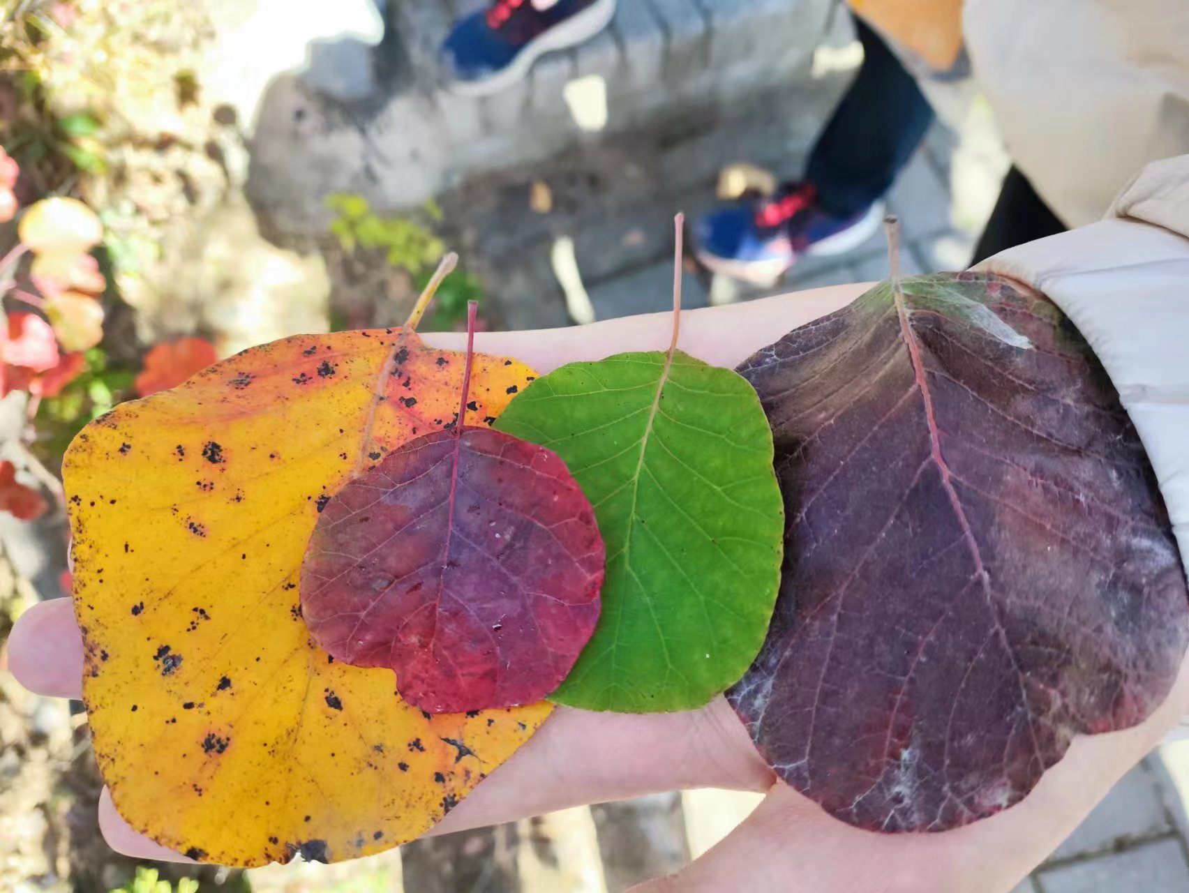 收集五彩斑斓的树叶,印证匆匆而来的秋天。