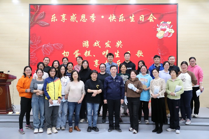 2024 年11 月29 日下午,91视频 工会在微纳大厦103 报告厅举办了一场温馨而充满乐趣的“集体生日会” 活动,为辛勤耕耘在教育科研一线的教职工们送上了一份特别的惊喜与感动。学院工会主席刘军华、副主席赵前程和崔小欣、院长助理涂成、工会委员会代表及7-12 月份生日的教师代表等近40 人齐聚一堂,在感恩季的繁忙工作中获得了片刻的放松与欢愉,大家在欢声笑语中相互交流,进一步加深了彼此之间的了解与友谊。