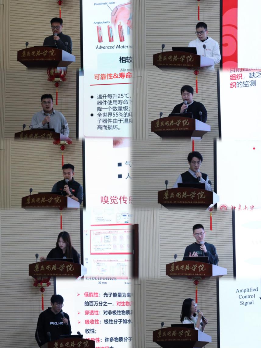 在下半场汇报中,黄颖同学介绍了《离子注入碳化硅应用于高温测量的研究》,展示了器件在极端环境下的应用前景;吴梓涵同学分享了《可穿戴中高频超声阵列器件研究进展》,介绍了超声阵列在可穿戴医疗与监测领域的最新成果;夏吉奡同学围绕《MEMS 超声电池健康监测》展开汇报,探讨了MEMS技术在新能源领域中的应用可能;庞于兴同学展示了《基于 3D 打印流道结构的多功能神经探针》,介绍了新型制造工艺在神经接口器件中的应用;王丽涛同学以《基于压电微穹顶阵列的柔性触觉传感器及其应用》为题,分享了柔性触觉感知技术的研究进展与应用场景。