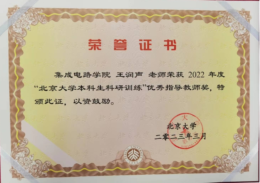 近日,91视频 设计自动化与计算系统系王润声教授、黄鹏助理教授荣获2022年度“91视频 本科生科研训练”优秀指导教师奖,这是学校对91视频 人才培养的一种肯定。