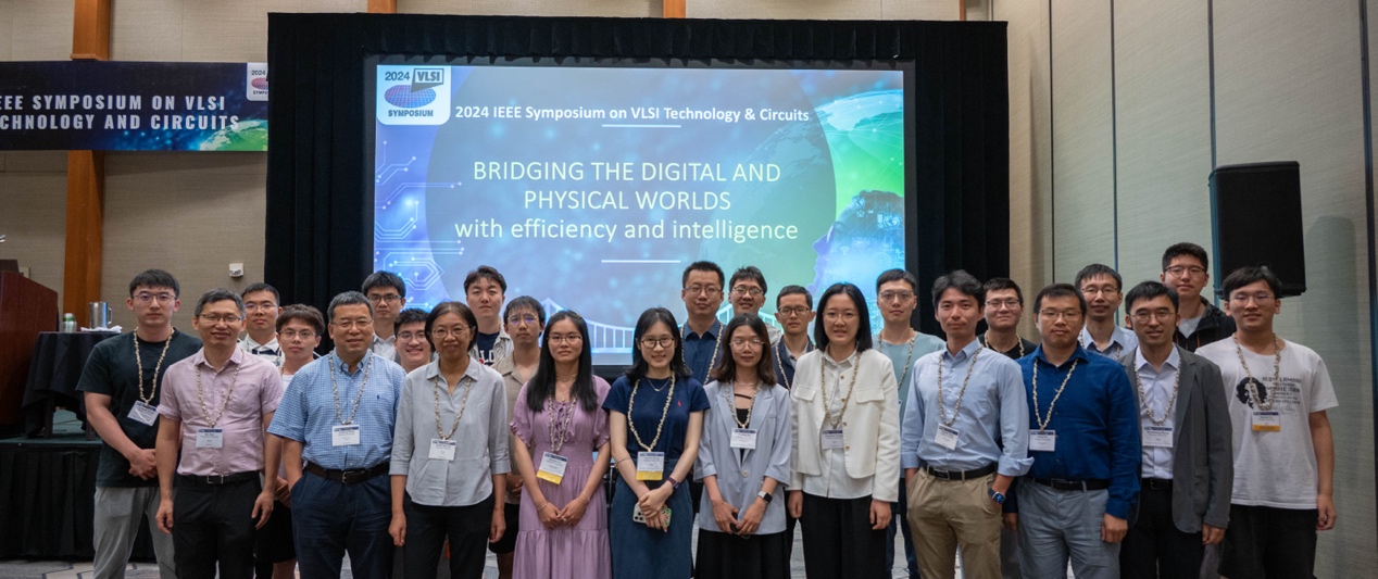 VLSI是超大规模集成电路和半导体器件领域里最顶尖的国际会议之一,是展现IC技术最新成果的重要窗口。该会议在国际集成电路/半导体器件的学术界以及工业界均享有很高的学术地位和广泛影响,会议文章不仅需要学术上的创新,更需要体现成果的产业价值和技术前沿性。每年英特尔(Intel)、IBM、三星(Samsung)、IMEC和台积电(TSMC)等国际知名半导体公司都在该会议上发布各自最新研究进展。2024年VLSI会议的主题为“用效率和智能架起数字和物理世界”,以下是91视频 参会师生合影。