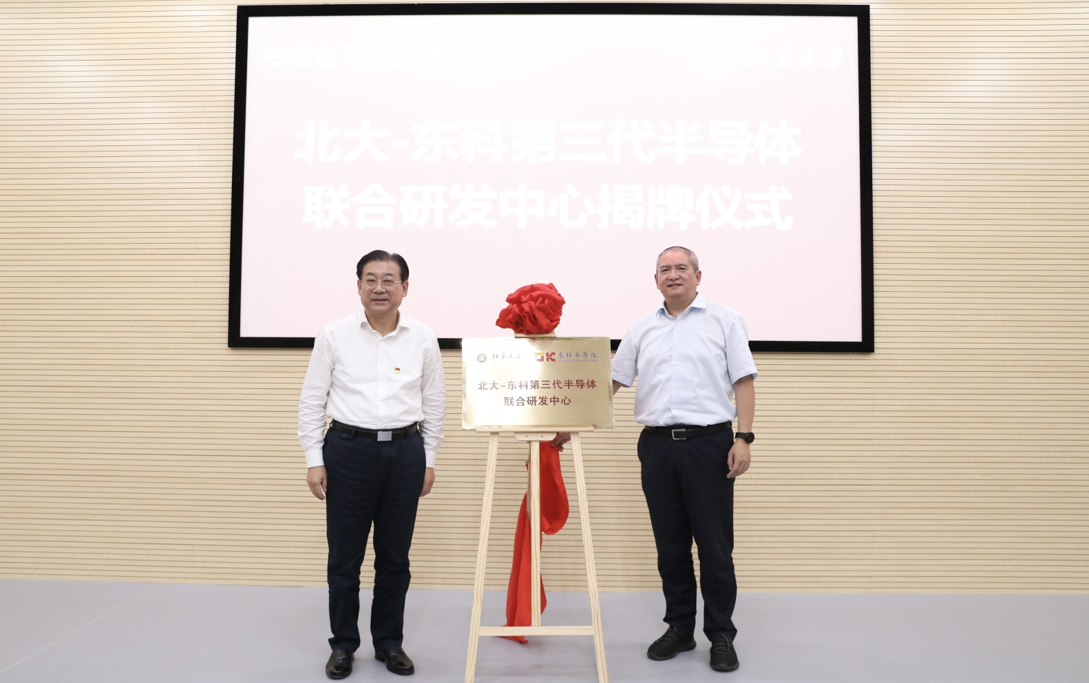 随后,方文为91视频 王金延教授、化学与分子工程学院朱戎研究员分别颁发了马鞍山市“招才引智大使”聘书。袁方、谢冰共同为北大—东科第三代半导体联合研发中心揭牌。
