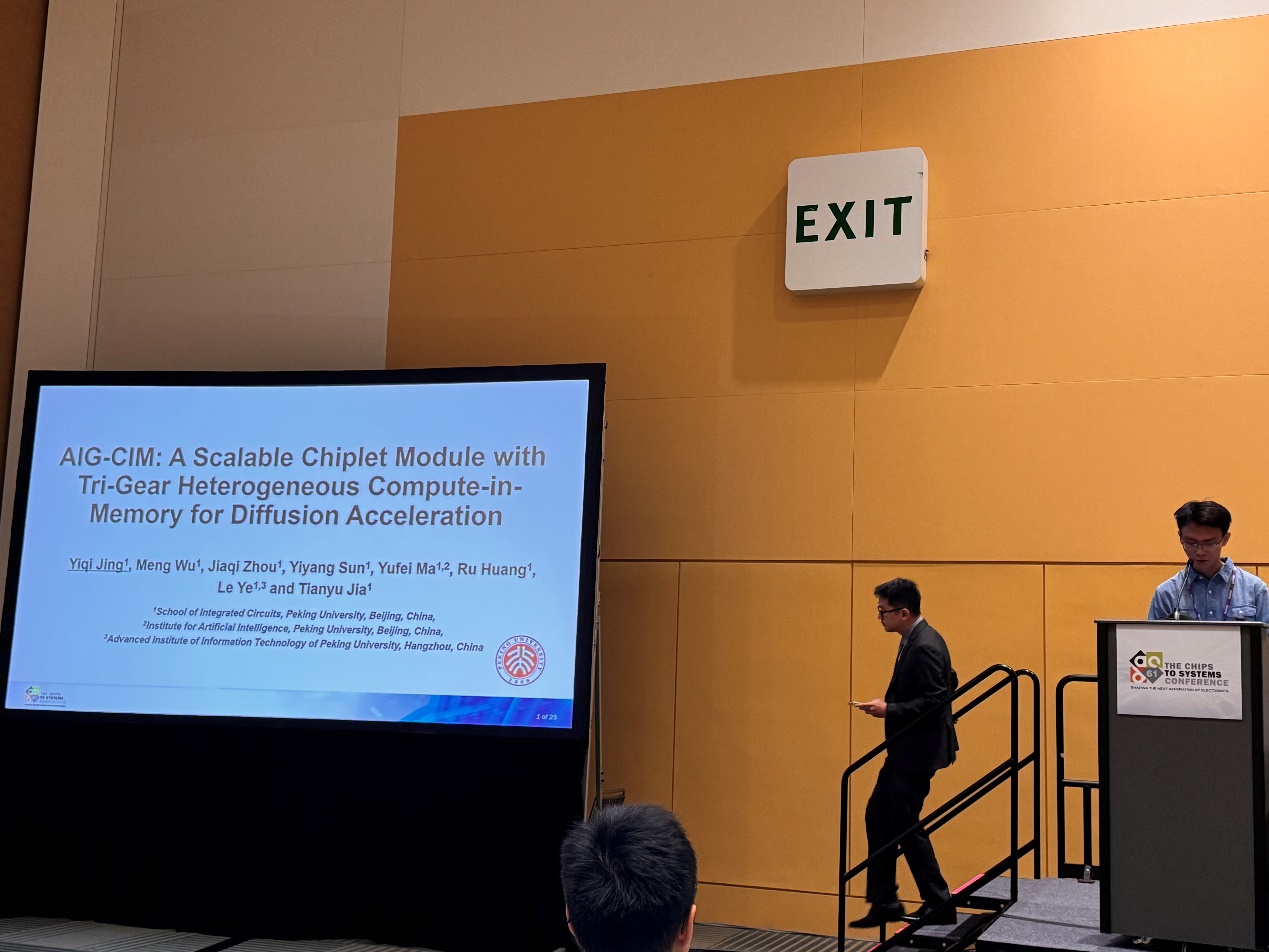 随着AI内容生成算法的不断发展,Diffusion扩散模型在图像生成领域表现出卓越能力。然而,此类模型在硬件部署上面临巨大挑战,主要来源于其重复多轮的去噪过程、模型不同层次对计算和存储资源需求的不一致性,以及庞大的参数规模。针对上述问题,黄如院士-叶乐教授、贾天宇研究员团队利用存内计算(CIM)硬件高效执行计算任务,并提出了异构多档存算比方案,通过细粒度优化硬件时间和空间利用率,满足模型结构中割裂的计算和存储需求,提升存内计算集群的整体性能。此外,为满足应用的高性能需求,本工作还探索了芯粒扩展方案。采用2.5D集成技术,并结合针对存内计算硬件特性的工作负载平衡策略,优化了中间数据生成和传输调度,缓解了数据传输压力。在性能评估方面,我们使用内建的设计空间探索(DSE)框架和性能评估器,快速迭代出最优的多档异构设计方案。结果显示,异构多档存算设计相比传统同构方案显著提高了扩散模型任务部署中的硬件利用率。基于设计空间探索框架产生的芯片原型AIG-CIM集群,相比于RTX 3090 GPU,实现了两个数量级的吞吐量和能效提升。该工作以《AIG-CIM: A Scalable Chiplet Module with Tri-Gear Heterogeneous Compute-in-Memory for Diffusion Acceleration》为题发表(博士生景亦奇第一作者,贾天宇研究员和叶乐教授为通讯作者)。