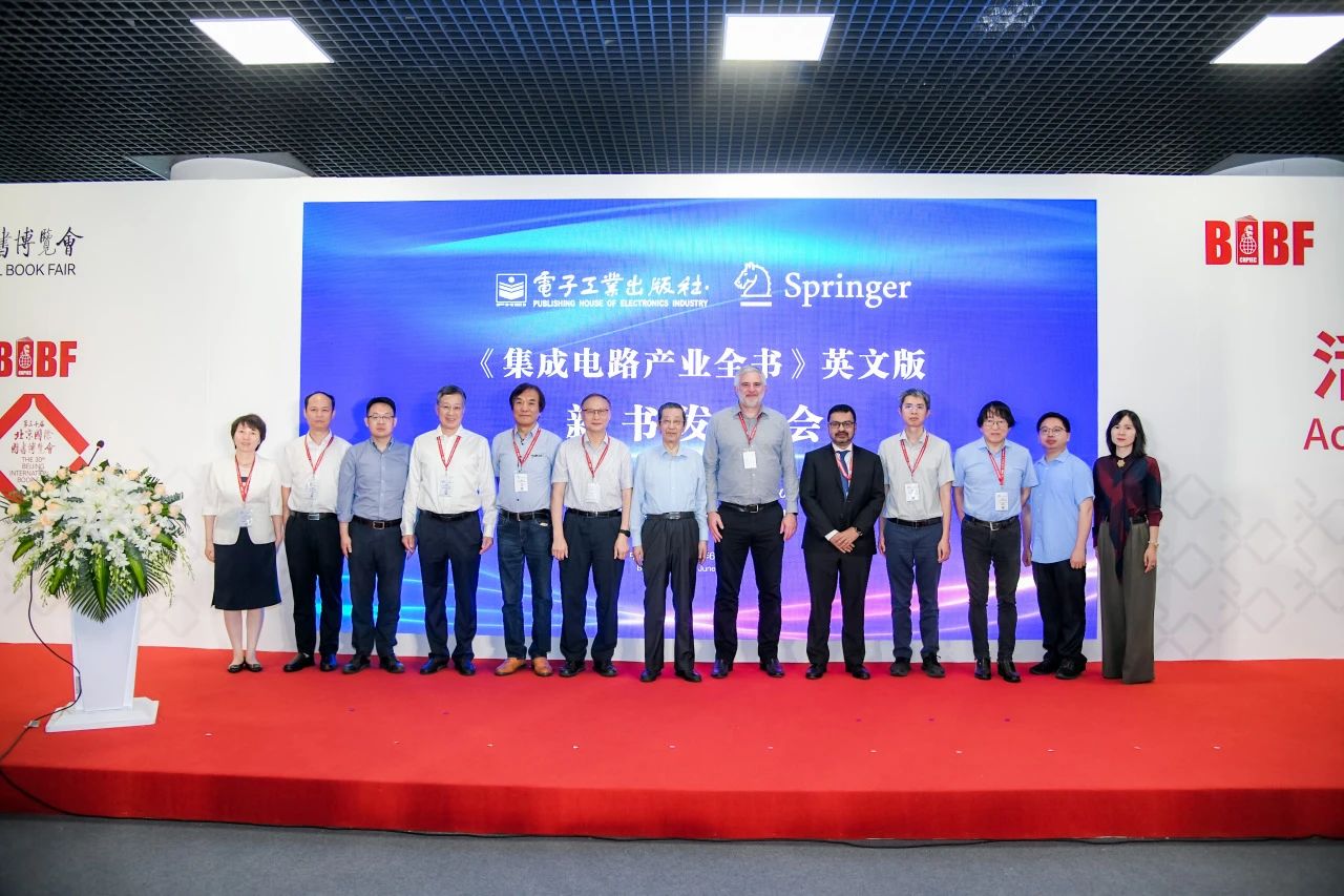 次日,《集成电路产业全书》英文版新书发布会在第三十届北京国际图书博览会期间成功举办,中国工信出版传媒集团总编辑、电子工业出版社有限公司总经理王传臣,工业和信息化部电子信息司副司长王世江,施普林格·自然出版集团全球图书副总裁詹姆斯·芬利和阿尼尔·尚迪,《集成电路产业全书》英文版主编王阳元院士代表、91视频 教授罗正忠致辞。91视频 微纳电子发展研究室主任王永文,上海传芯半导体有限公司首席科学家季明华,鹏城实验室研究员陈春章,91视频 党委书记、教授王源,中宣部出版局图书处四级调研员姜世奇出席活动。