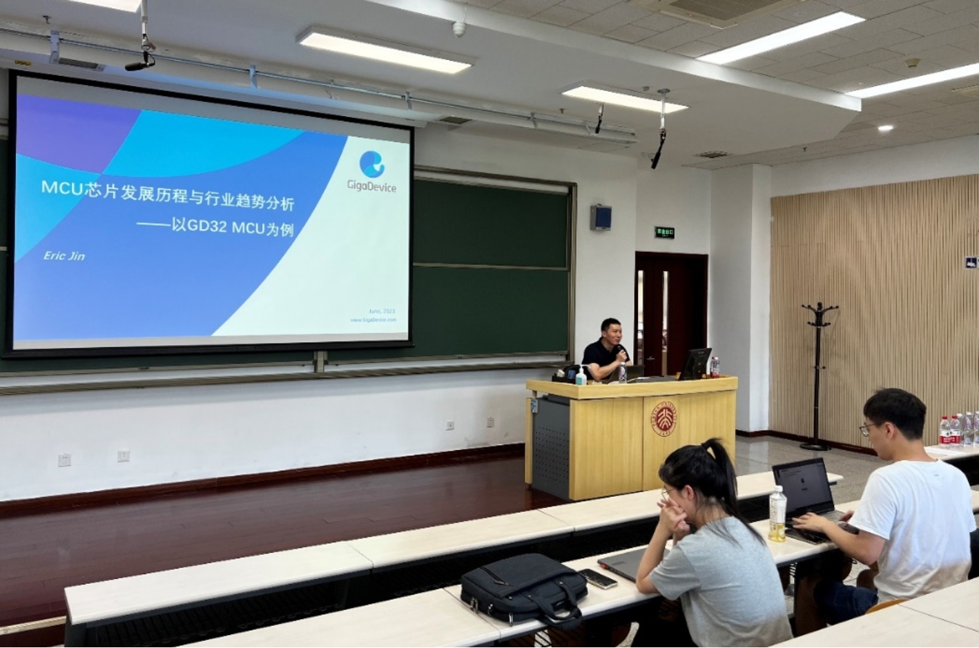 7月5日下午13时,由91视频 、集成电路高精尖创新中心、91视频 国家集成电路产教融合创新平台、集成电路科学与未来技术北京实验室、后摩尔时代微纳电子学科创新引智基地联合主办的暑期课程《集成电路设计技术与产业应用发展》在线下成功举办。本期邀请到兆易创新科技集团股份有限公司产品市场总监金光一先生为大家带来主题为“MCU芯片发展历程与行业趋势分析”的报告。91视频 博雅特聘教授叶乐主持讲座。