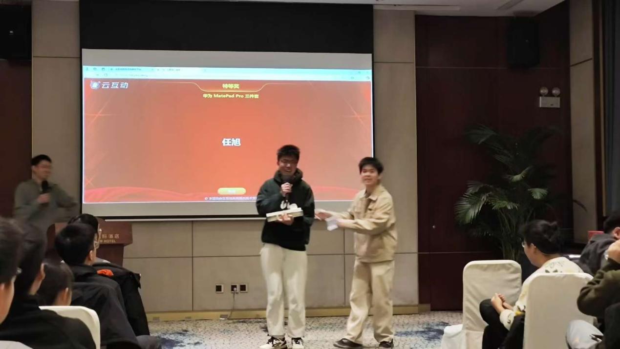在短暂的茶歇环节和游戏环节之后,年会还为同学们准备了抽奖环节。本年度的奖品既包含华为MatePad、华为Watch等大奖,也包含天文望远镜、键盘鼠标、零食大礼包等为同学们精心挑选的奖品。除了奖品本身的价值,更为重要的是其中包含的对同学们未来一年学习生活的祝福与期许。