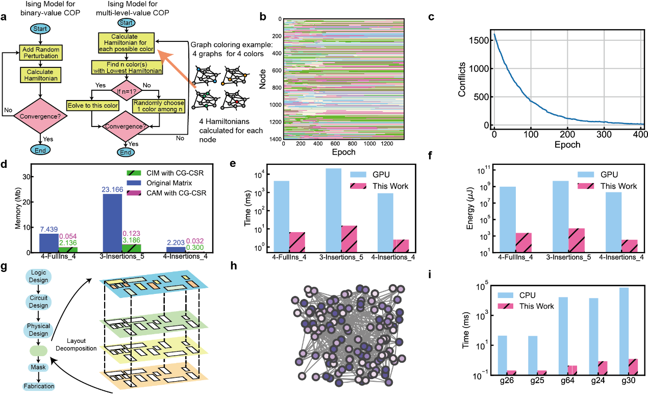 与北方集成电路技术创新中心(北京)有限公司自主研发的先进忆阻器集成工艺,团队设计研制了高能效存内伊辛计算芯片,并利用独创的数据映射方法完成了对任意伊辛图的组合优化问题求解。该工作开创了伊辛计算芯片的新范式,在伊辛机的实际应用方面实现了突破,为伊辛机芯片的实用化奠定了重要基础。