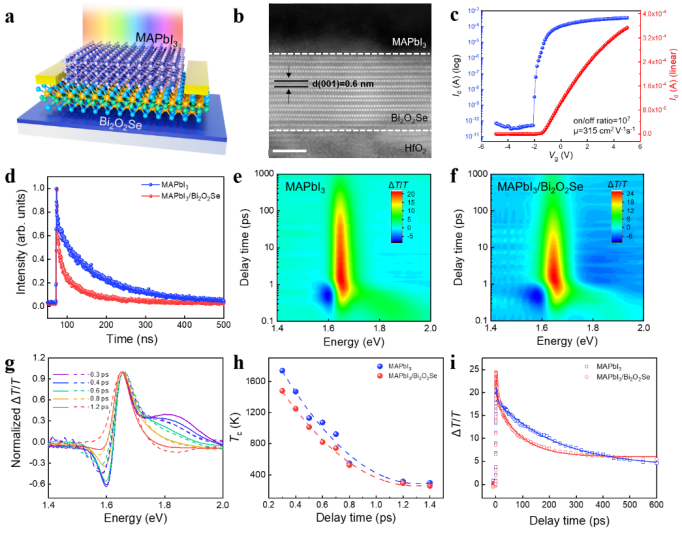 /集成电路高精尖创新中心黄如院士-贺明研究员团队结合理论计算与实验表征,首次揭示了卤化物钙钛矿三碘合铅酸甲铵(MAPbI3)和新型电子-离子氧化物半导体Bi2O2Se能级动量守恒;通过飞秒瞬态吸收光谱,成功追踪了MAPbI3/Bi2O2Se异质结界面能级动量守恒增强的光生热电子输运动力学,实现了高灵敏、宽光谱、正负双极型光电响应;在此基础上,设计构建了高灵敏视觉感内预处理器件阵列,能够在月光环境(0.1 μW/cm2)展现出优异的视觉识别能力,显著提升...