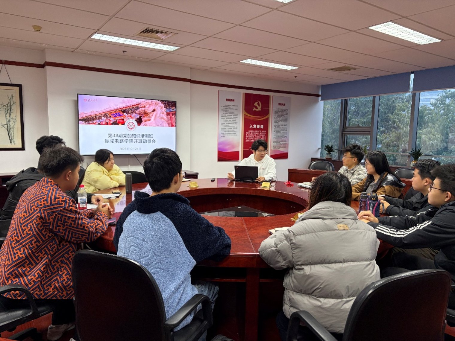 最后,王源从多个维度深入阐述了正确的入党动机与条件,结合党史人物事迹和新时代榜样故事,激励学员们不断加强自我革命,锤炼过硬政治品格,切实提高政治判断力、政治领悟力、政治执行力,深刻领会“两个确立”的决定性意义,不断增强“四个意识”、坚定“四个自信”、做到“两个维护”。他带领全体学员重温习近平总书记对广大青年“坚定理想信念,培育高尚品格,练就过硬本领,勇于创新创造,矢志艰苦奋斗”的殷切期望,强调青年学子要立大志、明大德、成大才、担大任,把科研学习与党和国家需要紧密结合,努力成为集成电路领域的先锋力量,在实现民族复兴的赛道上奋勇争先。