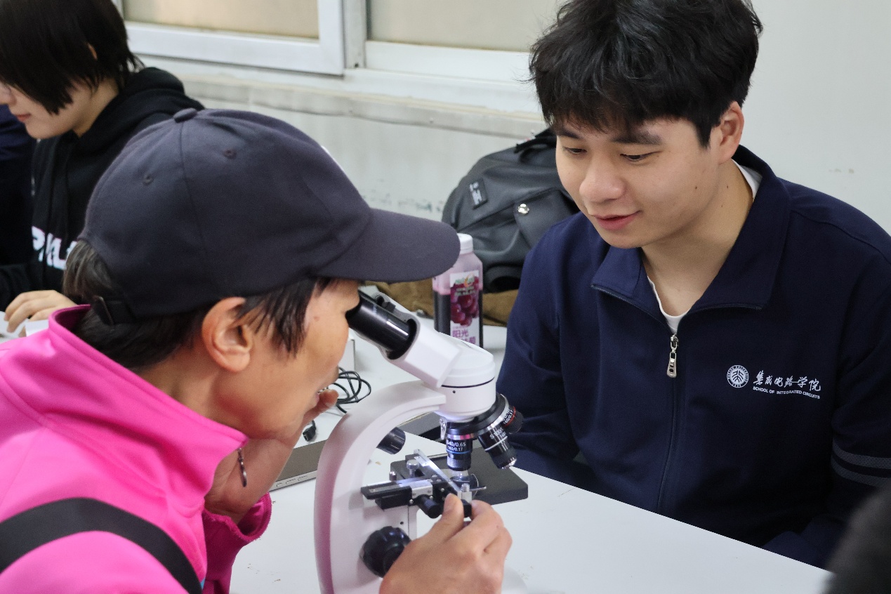 2024级研究生第一党支部与博士一班团支部联合海淀区中关园社区开展了“芯探微芒,智解寻常”科普进社区宣讲活动。学院团委书记王凌越参加活动,活动由第一党支部书记钟婷婷主持。