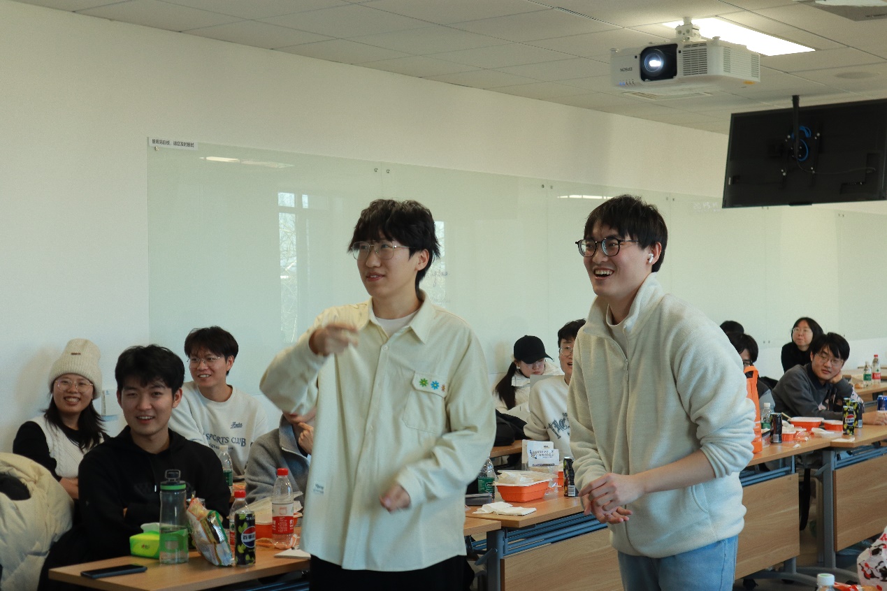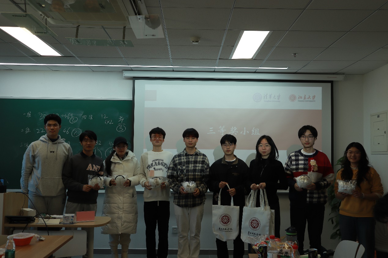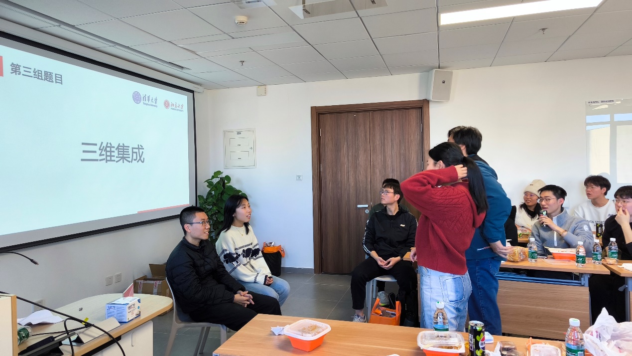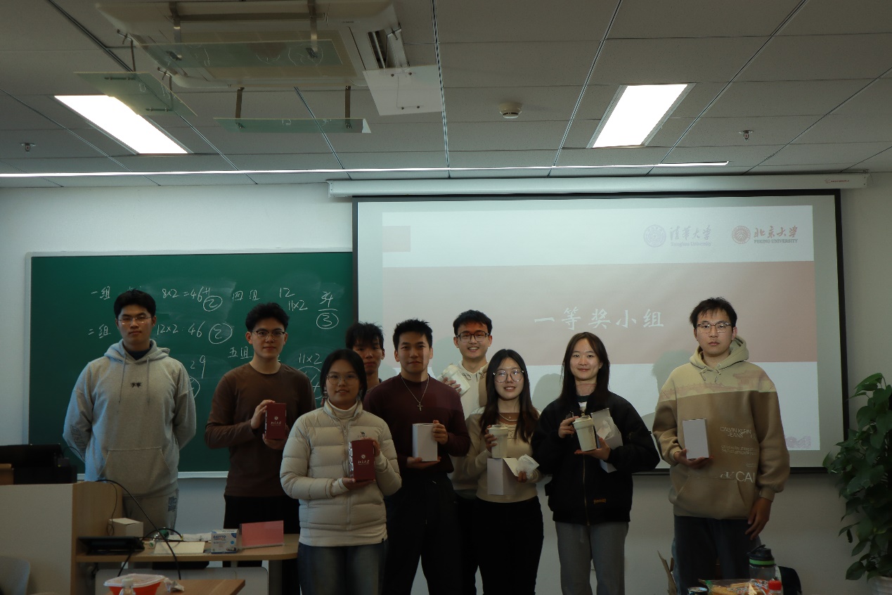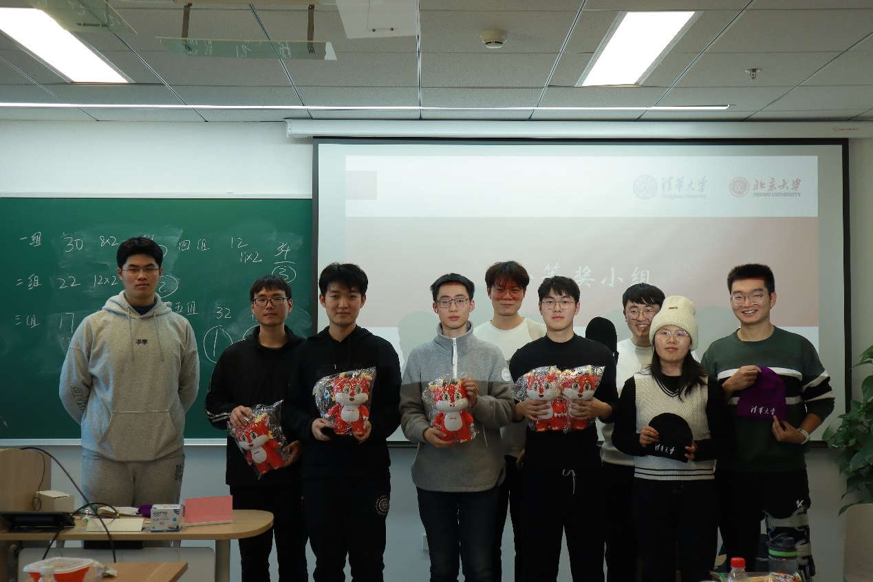 随后,同学们集体前往清华大学自强科技楼开展交流会。首先,两学生支部支书分别介绍了各自支部的基本情况,并分享了党日活动和理论学习的举办经验。随后,两支部进行了“听歌识曲”、“你划我猜”等小游戏环节,同学们就党史问答、专业知识、学校特色等进行比拼。结束后,综合各类小游戏的积分评选出了一、二、三等奖,双方同学也互相交换了纪念品。