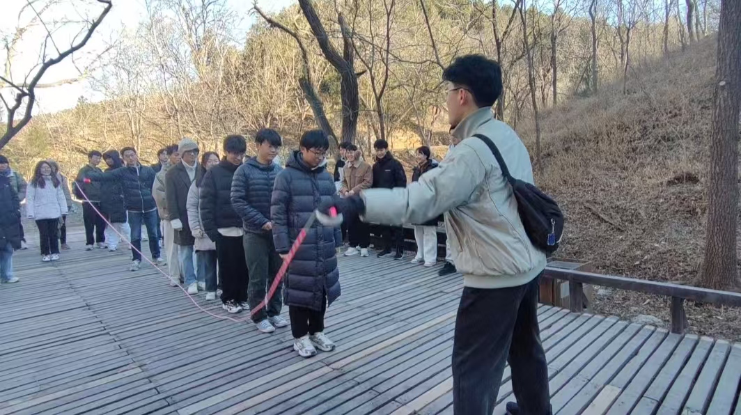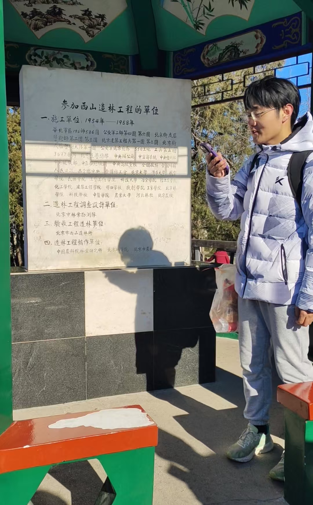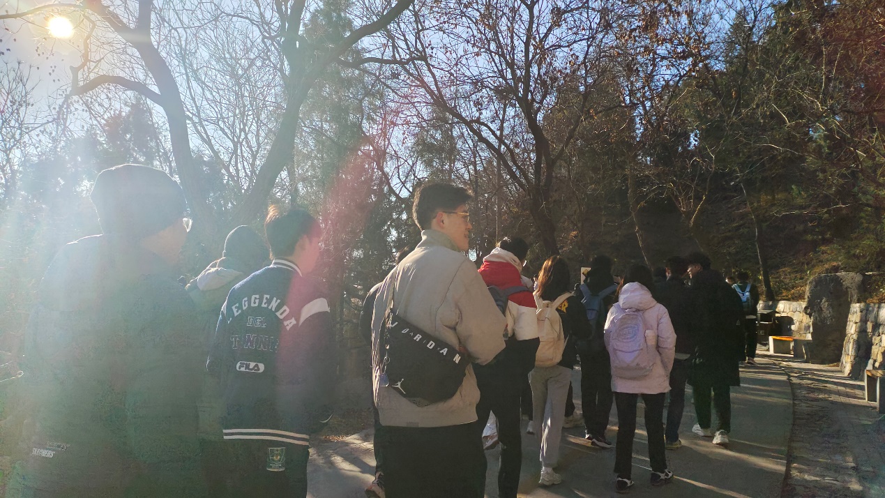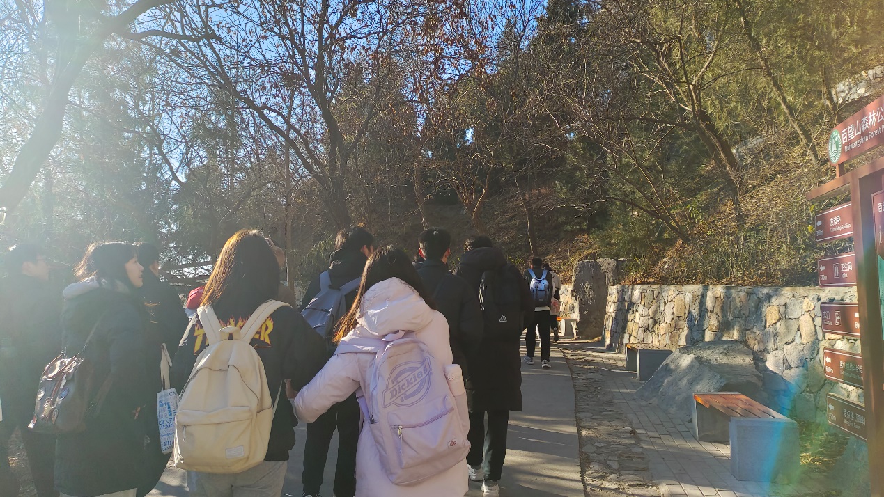 “山明水净夜来霜,数树深红出浅黄。” 早上九点,支部成员抵达公园,简单交流后分成5个小组登山游览,依次参观了绿色文化碑林、黑山扈战斗纪念碑、西山造林工程纪念碑、佘太君庙和航天纪念林等名胜风景,在分组讲解、寻找打卡点和团体跳绳等小活动中,同学们对百望山的生态价值和历史文化有了全面的了解,彼此之间的距离也在慢慢拉近。