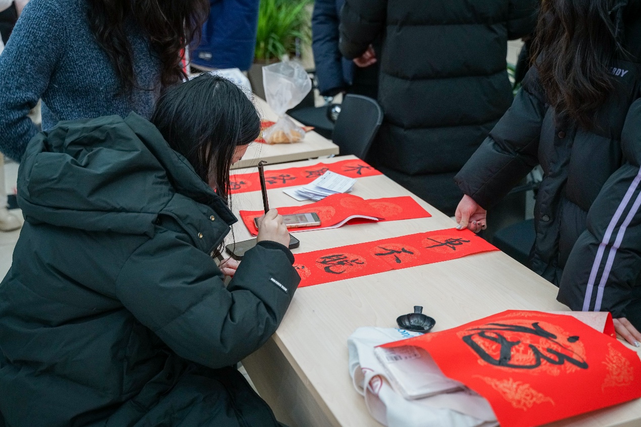 除了精彩的节目表演,活动现场还举办了发福字、书写春联、编织中国结等传统文化体验活动。同学们自由发挥,用一双巧手表达对新一年的美好祈愿。