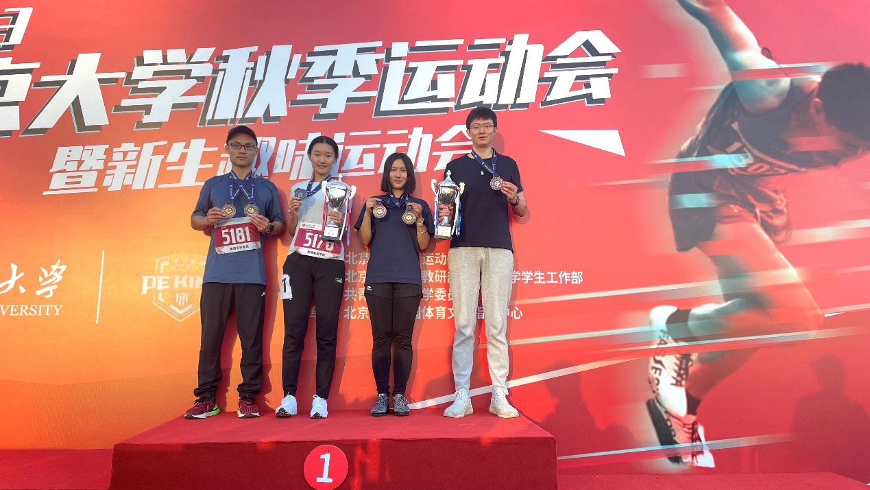 杨宇翔、王丽涛、陈卓雅、李和倚同学在4×400m混合接力比赛