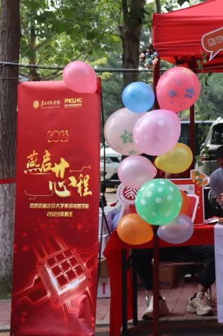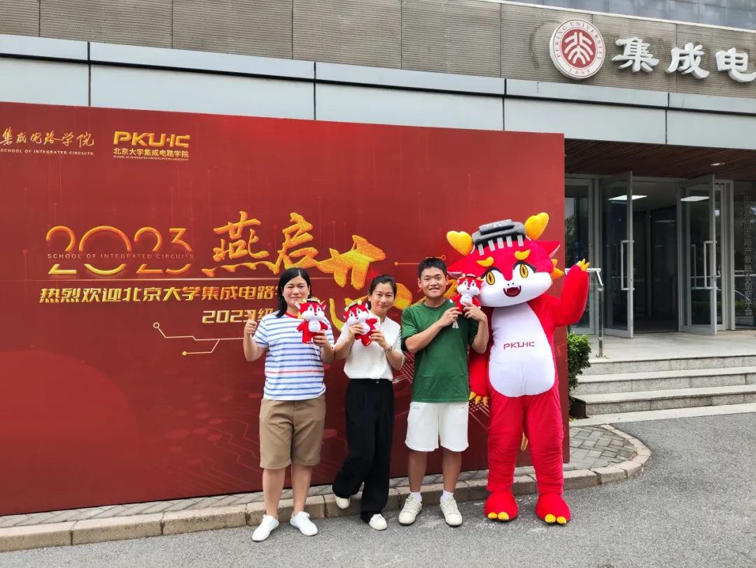 同学们怀着初入燕园的好奇与激动之情,手持学院标志,和吉祥物“莫斯电龙”开心合影,留下了在燕园的记忆。
