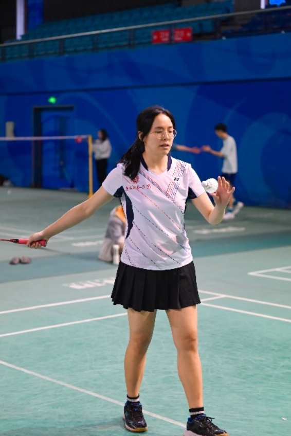总比分1比2落后。第四场再次面对校队选手带领的女双,高思洋和李婷教职工组合顶住压力以23 :21险胜对手,总比分2比2,将比赛拖入决胜局。最后一场高思洋老师兼项,与高旭混双组合轻松拿下,最终以总比分3比2战胜数学对外汉语联队挺进八强。