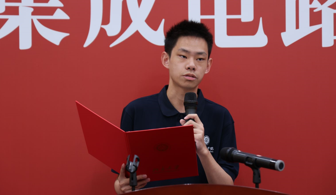 朱天翔在发言中结合了自己本科期间从器件到EDA领域的科研探索经历,分享了自己关于人生选择这一命题的思考,期待和同学们一道创造无限可能,无悔人生的选择。