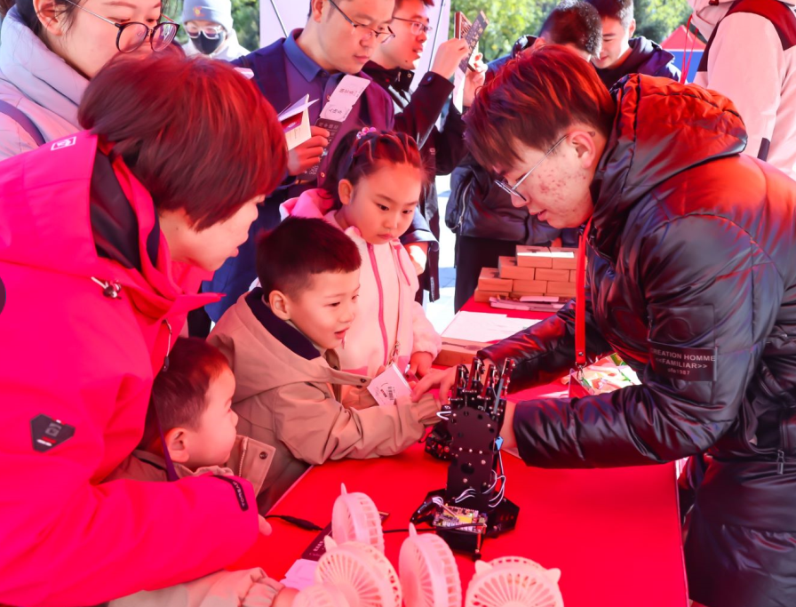 本次文化节不仅是知识的盛宴,更是技术与乐趣的融合。体验区以一种崭新的方式吸引着人们的目光,涵盖了集成电路学科多个领域相关的知识。其中包括了“可穿戴传感机械臂操作”、“载流子输运知识科普”、“电子器件积木拼装”和“模拟电路布线游戏”等互动体验方式。参与者不仅享受着游戏带来的乐趣,在玩耍的同时也获得了集成电路学科相关的知识。融合了娱乐和学习的体验方式,让参与者不知不觉中增加了对集成电路学科的理解,同时也为这次文化节增添了活力和趣味。