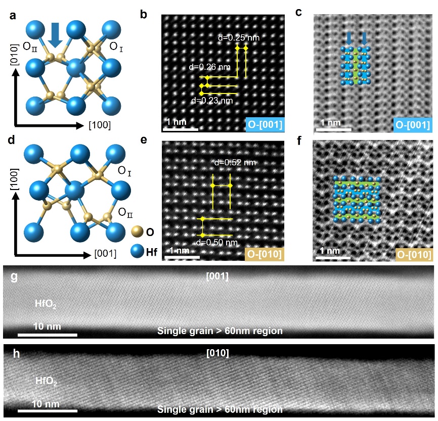 图1. 无掺杂HfO2铁电薄膜的微观结构表征