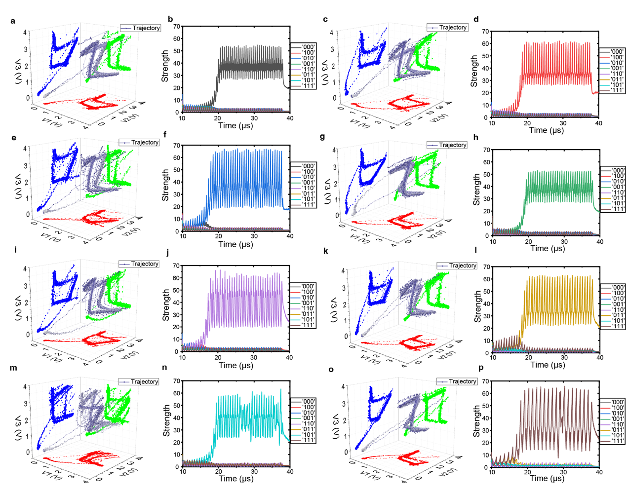 图三、3个耦合振荡器的8种相空间模式与决策分类结果