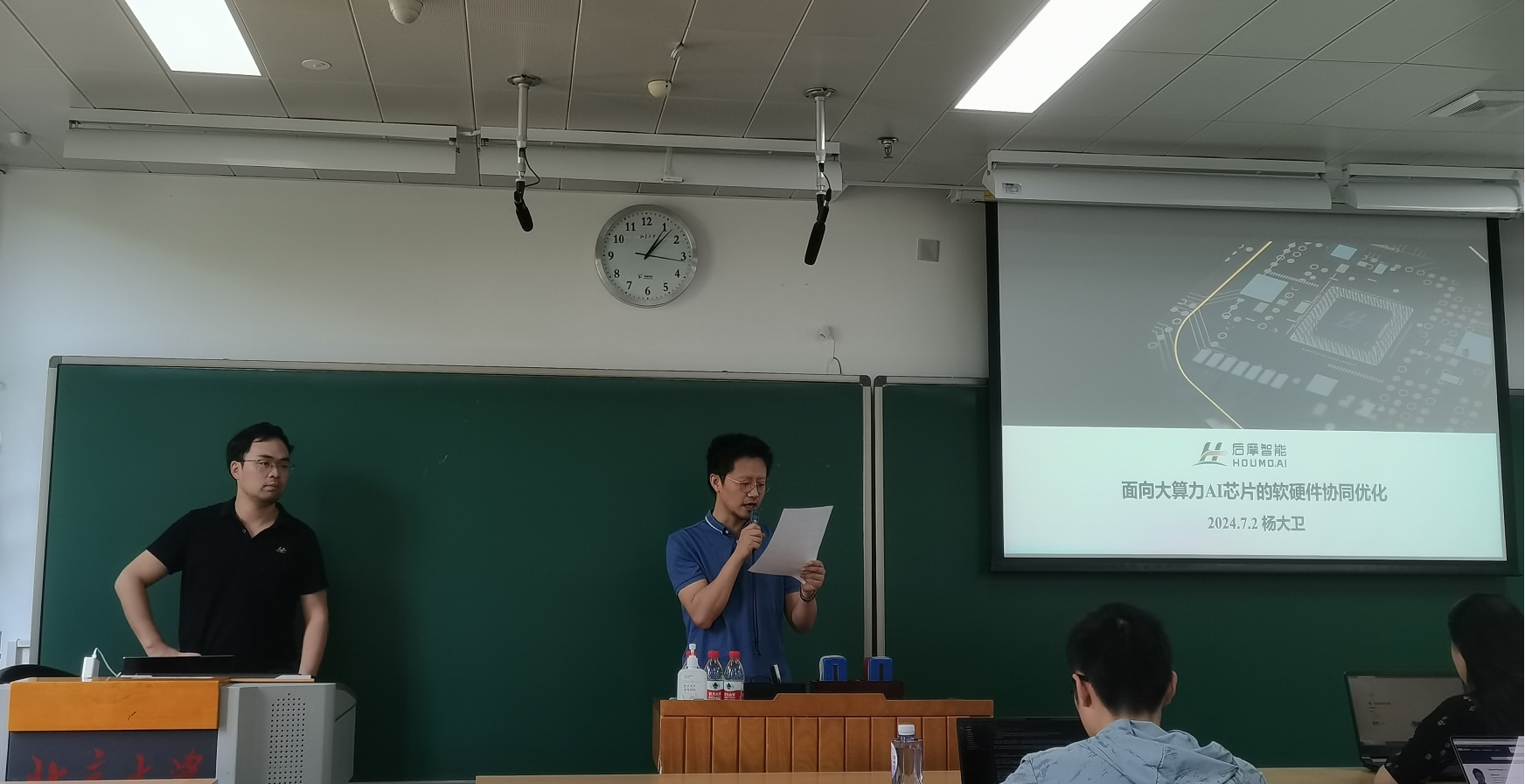 7月3日下午13时,由91视频 、集成电路高精尖创新中心、91视频 国家集成电路产教融合创新平台、集成电路科学与未来技术北京实验室、后摩尔时代微纳电子学科创新引智基地联合主办的暑期课程《集成电路设计技术与产业应用发展》在线下成功举办。本期邀请到后摩智能芯片算法负责人杨大卫博士为大家带来主题为“面向大算力AI芯片的软硬件协同优化”的报告。91视频 博雅特聘教授叶乐主持讲座。