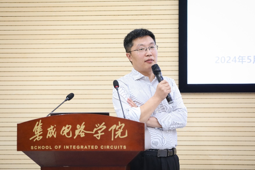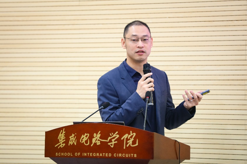 第二场,由润石科技董事长张明校友(2006级硕、2018级博)带来题为“高性能模拟集成电路的发展趋势和挑战”的讲座。张总提出,模拟电路主要关注降低噪声、失真、提高可靠性等精细化设计。张总简要介绍了他们开发的高速流水线型ADC、超低输入偏置电流运放以及精密电压基准源等芯片,而目前模拟集成电路面临的挑战主要在于高性能模拟芯片设计需要依靠多环节有机整合实现,例如产品定义、电路设计、封装测试、成本管控等等;此外,如何同时兼顾低噪声、高精度、低失真、高可靠性、高速等性能也是一个重要的问题。针对模拟芯片的未来趋势,张总认为,系统方案类专用高性能模拟芯片逐渐增加,功能增加、性能参数收缩,专一适配于特定场景的情况增多。在提问环节,张总针对模型计算、人才培养与大家进行了交流。