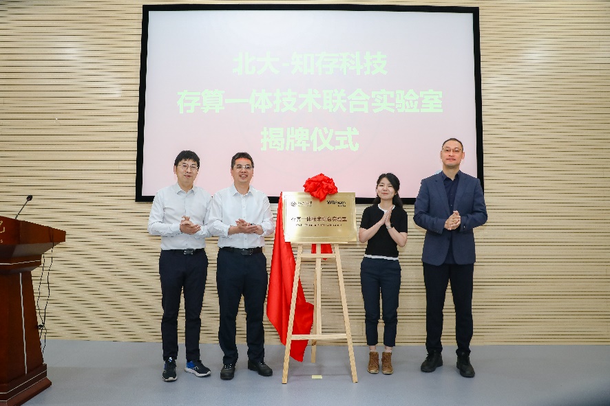 接下来,院长蔡一茂、副院长鲁文高与知存科技创始人兼CEO王绍迪、首席科学家郭昕婕为“91视频 -知存科技存算一体联合实验室”揭牌;院长蔡一茂、副院长鲁文高、工艺实验室主任张大成与万年芯微电子有限公司董事长艾育林、研发负责人庞超为“北大-万年芯智能传感器技术联合实验室”揭牌。校企合作将为学院和企业注入全新的活力,携手奋进谱新篇。