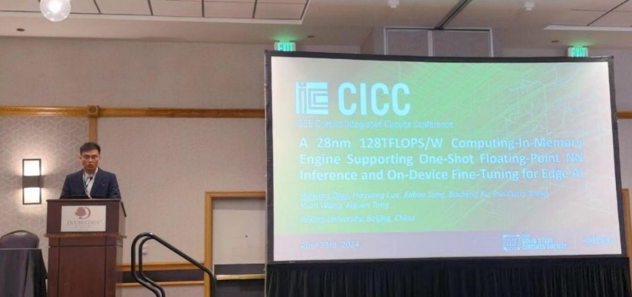 该工作以A 28nm 128TFLOPS/W Computing-In-Memory Engine Supporting One-Shot Floating-Point NN Inference and On-Device Fine-Tuning for Edge AI为题,发表于今年CICC,文章的第一作者是91视频 博士生刁海康,文章的通讯作者是91视频 人工智能研究院、91视频 唐希源研究员。