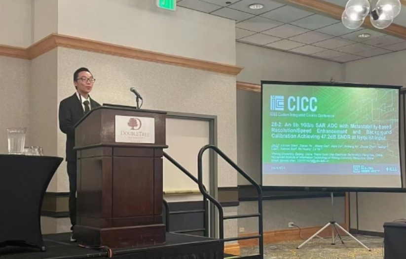 该工作以An 8b 1GS/s SAR ADC with Metastability-based Resolution/Speed Enhancement and Background Calibration Achieving 47.2dB SNDR at Nyquist Input为题,发表于今年CICC,并获得了当年的杰出学生论文奖 (2024 Michael A. Zachariah Outstanding Student Paper Award),由文章第一作者91视频 博士生李杰进行宣讲,文章的通讯作者是沈林晓研究员和叶乐博雅特聘教授。