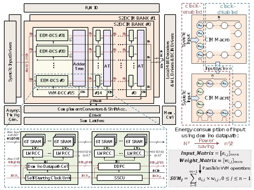 该工作以S2D-CIM: A 22nm 128Kb SRAM-based Systolic Digital Compute-in-Memory Macro with Domino Data Path Supporting Vector Multiplication and 2-D Weight Update为题,发表于今年CICC,文章第一作者是91视频 博士生武蒙,文章的通讯作者是贾天宇研究员和叶乐博雅特聘教授。