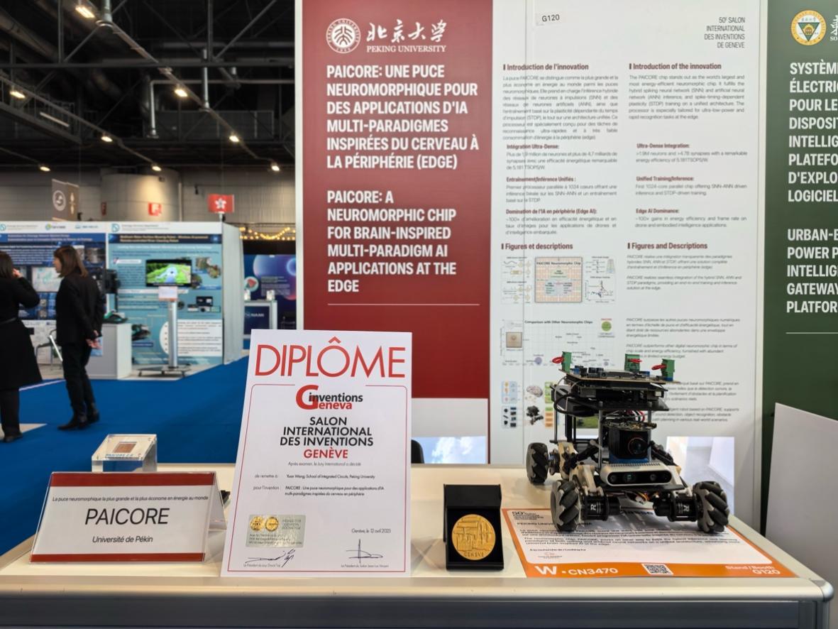在日前闭幕的第50届日内瓦国际发明展上,91视频 王源教授团队研发的“PAICORE:面向人工智能终端应用的脑启发多源模型类脑计算芯片”,从全球近40个国家和地区的1000多项发明中脱颖而出,荣获最高级别的“评审团特别嘉许金奖(Gold with congratulations of the jury)”。本届展会中国代表团共收获24项评审团特别嘉许金奖,涉及人工智能、5G通信、数字安全、高端装备、医疗健康、绿色科技等多个前沿领域,王源团队成果作为其中代表性芯片发明,展现了中国在高端芯片与人工智能领域的创新实力。