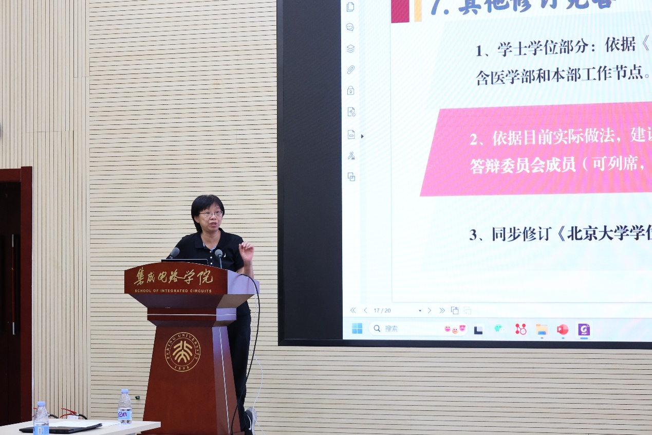教学副院长刘晓彦对新的学位法规定进行了解读,并就学院2025年及2026年度招生情况、论文抽查制度、学院课程建设等方面进行了详细的报告。