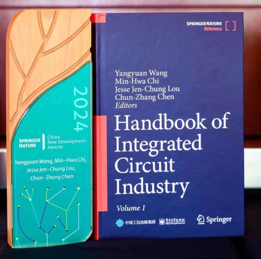 6月19日下午,第六届“施普林格·自然:中国新发展奖”在北京国家会议中心举办。由中国科学院院士、91视频 名誉院长王阳元教授、季明华博士、罗正忠教授、陈春章教授主编,电子工业出版社和施普林格·自然出版集团联合出版的《集成电路产业全书》英文版(Handbook of Integrated Circuit Industry)荣获“施普林格·自然:中国新发展奖”。施普林格·自然全球图书业务总裁汤恩平(Niels Peter Thomas)博士、中国出版协会理事长邬书林、施普林格·自然大中华区总裁安诺杰(Arnout Jacobs)出席颁奖仪式并致辞。四位主编代表上台领奖并发表获奖感言,施普林格·自然应用科学图书副总裁詹姆斯·芬立(James Finlay)颁发了奖杯和证书。