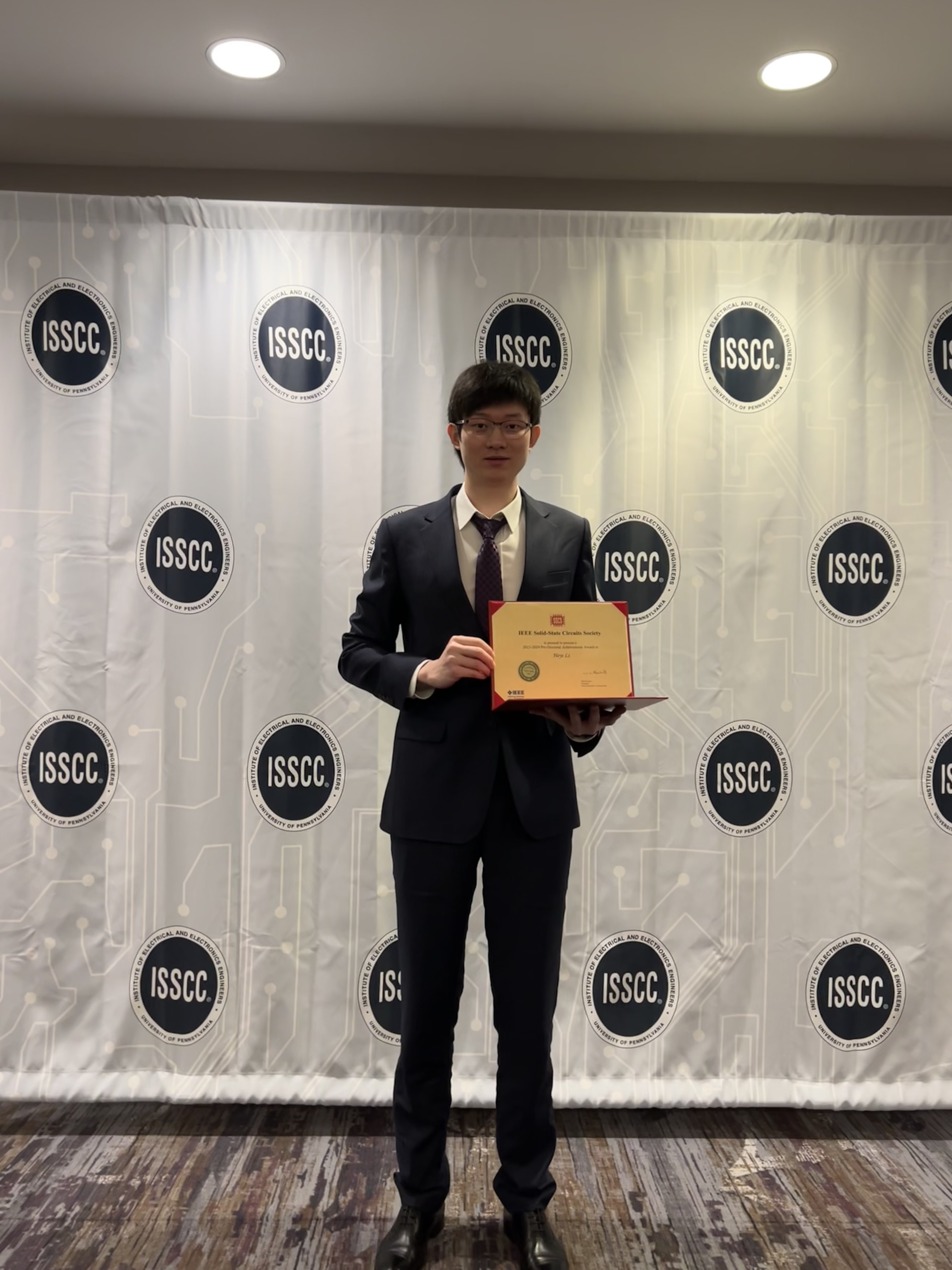 SSCS Predoctoral Achievement Award(国际固态电路协会博士生成就奖),每年2月中旬在美国旧金山召开的ISSCC会议上进行颁发,是集成电路设计领域颁发给在读博士生的全球最高学术荣誉。该奖评审委员会由国际工业界、学术界知名专家共同组成,评定过程十分严谨,主要从学术成果的技术变革性、工业应用价值、学术影响力等方面进行综合评选。