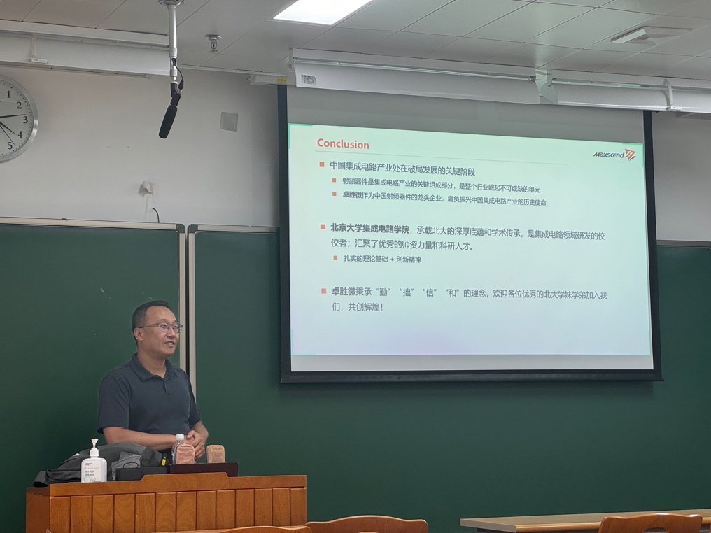 7月5日下午13时,由91视频 、集成电路高精尖创新中心、91视频 国家集成电路产教融合创新平台、集成电路科学与未来技术北京实验室、后摩尔时代微纳电子学科创新引智基地联合主办的暑期课程《集成电路设计技术与产业应用发展》在线下成功举办。本期邀请到卓胜微电子副总裁丁永旺博士为大家带来主题为“通用射频器件的应用、设计和制造”的报告。91视频 助理教授马宇飞主持讲座。