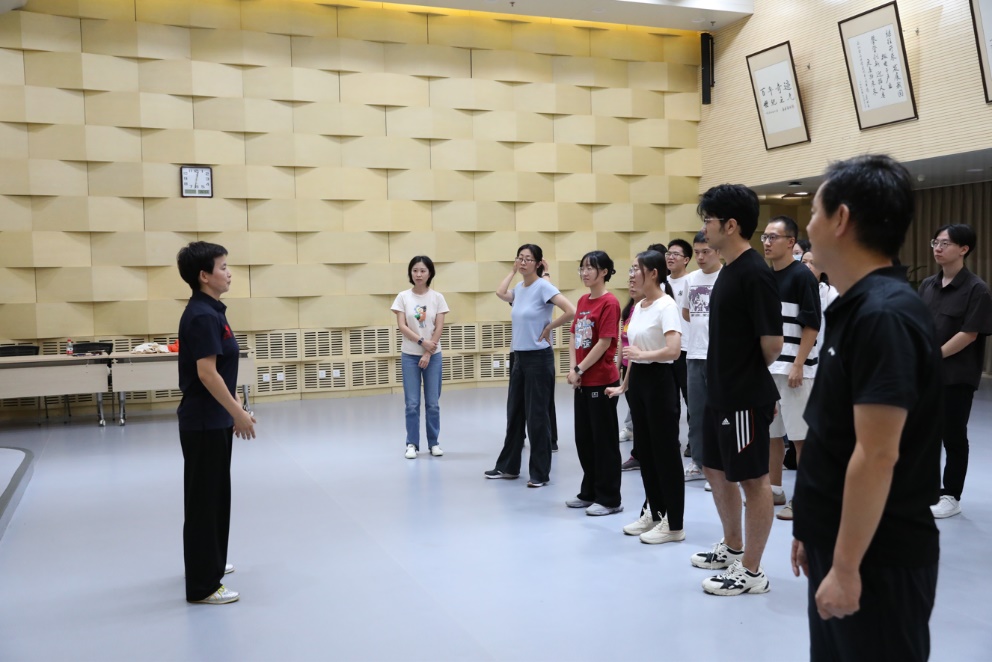 ,为大家讲授健身气功八段,以古风雅韵,共绘师恩长卷。党委副书记刘军华、张舒出席,共计40余位教职员工及学生参与活动。
