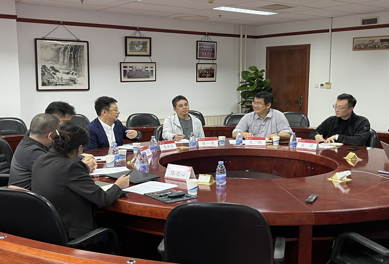 ,学院院长蔡一茂,副院长王玮,院长助理崔健参与交流。王玮主持交流会。